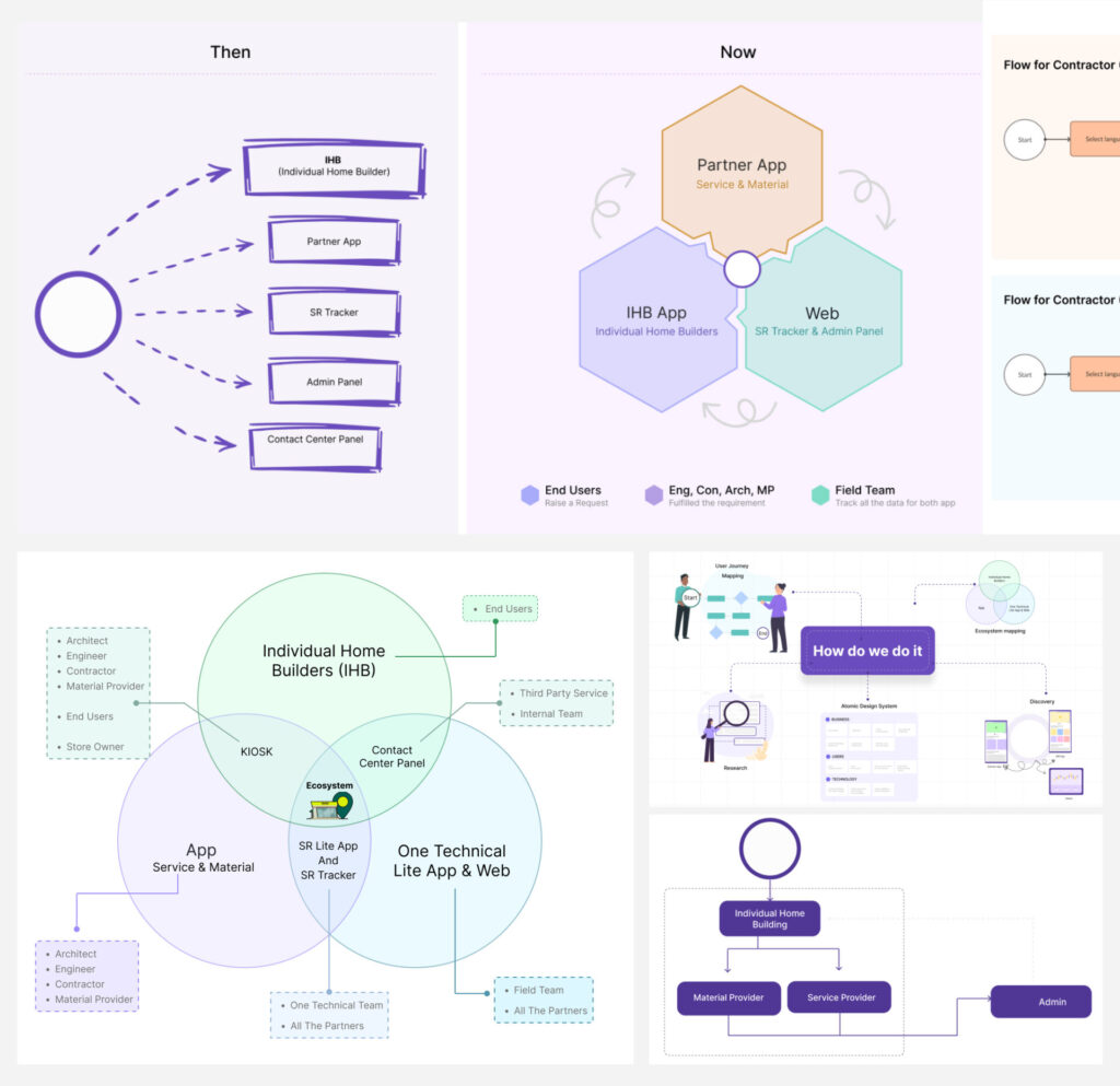 Understanding that the home building sector operates with fragmented stakeholders and complex coordination requirements, our team conducted extensive stakeholder mapping. We identified all players in the ecosystem: homeowners lacking construction expertise, service providers operating in unfamiliar markets, technical experts, architects, contractors, vendors, and administrative oversight teams.